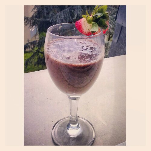 It is a slight different version of SimpleGreenSmoothies.com « My heart’s Romaine »:1 cup spinach. 1 cup romaine. 1 cup almond milk. 1 cup strawberries. 1 cup blueberries. 1 banana. 1 blood orange.